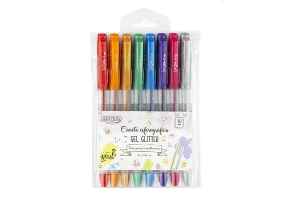 CANETA ESFEROGRÁFICA GEL GLITTER 1.0MM CORES SORTIDAS - BLISTER C/ 8UN