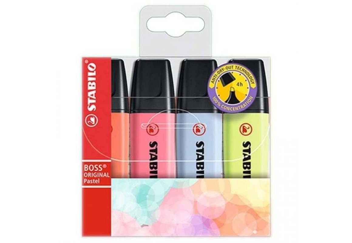 ESTOJO DE MARCA TEXTO STABILO BOSS PASTEL COM 4 UNI