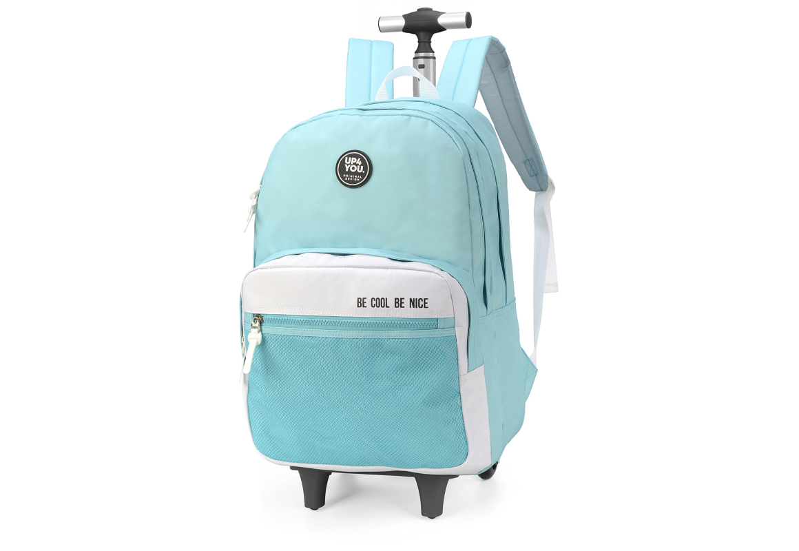 MOCHILA LUXCEL COM RODAS VERDE E BRANCA UN