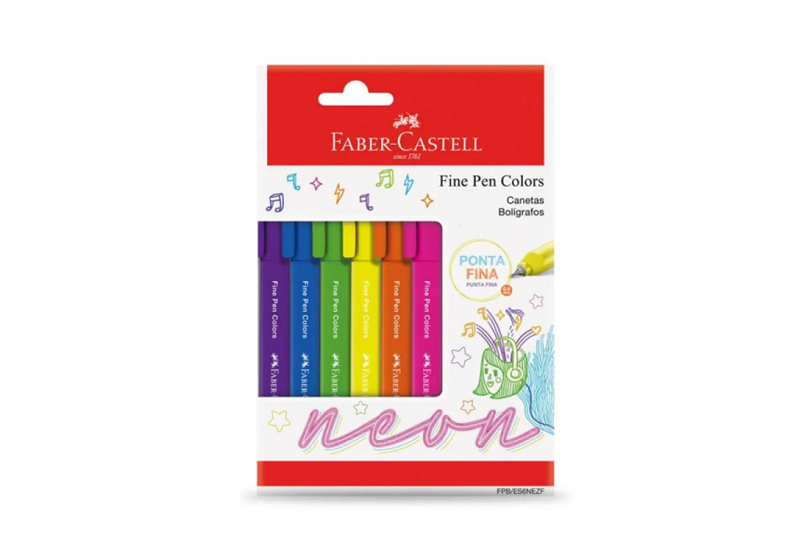 KIT CANETA FINE PEN COLORS C/ 6 CORES NEON FABER CASTELL