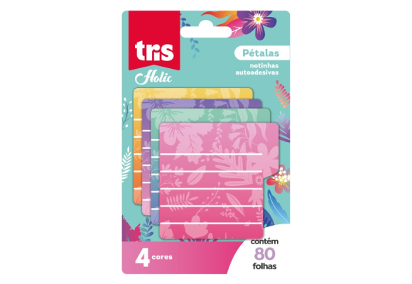 BLOCOS AUTOADESIVO C/4 TRIS HOLIC PETALA 80FLS 45MM X 45MM