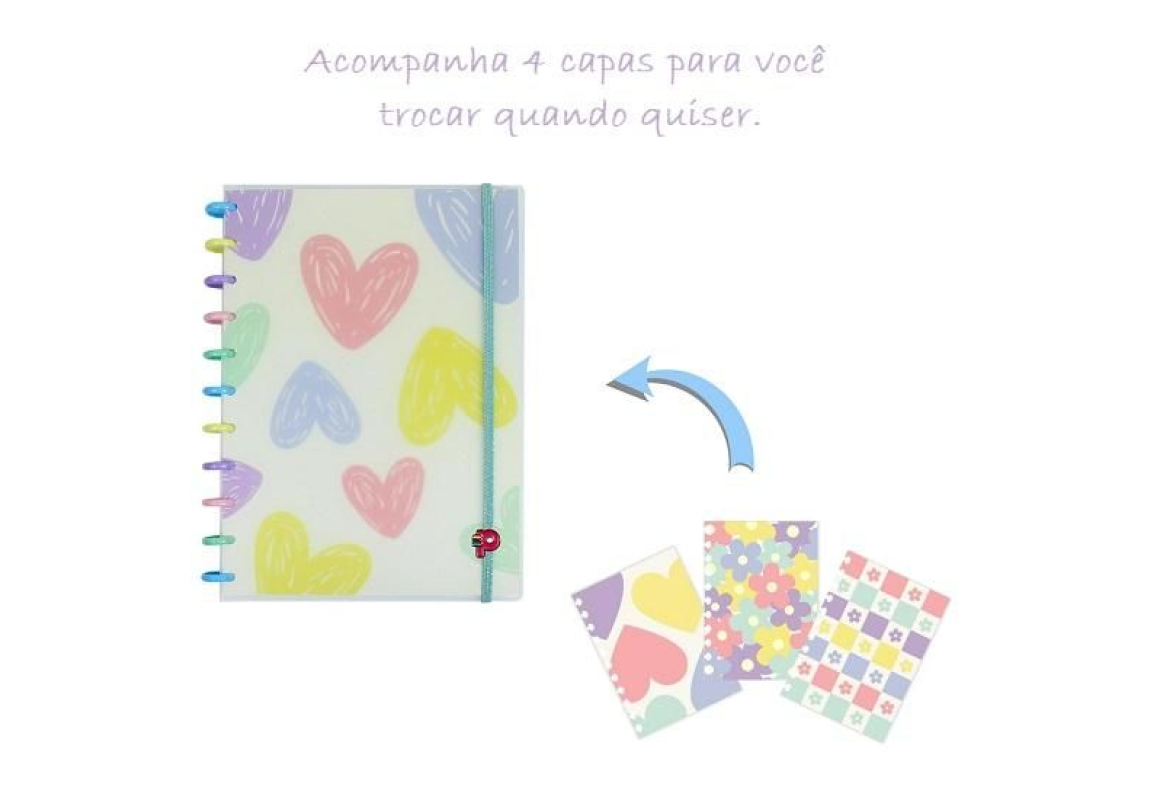 Cada caderno acompanha 4 capas em papel couchê 250g que podem ser trocadas a qualquer momento!