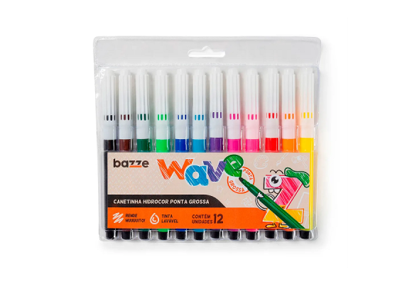 2. CANETINHA HIDROCOR BAZZE WAVE 12 CORES JUMBO