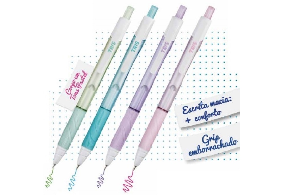 CANETA ESFEROGRAFICA TRIS LET'S FASHION RETRATIL, PONTA MÉDIA 1.0, CORES EM TONS PASTEL