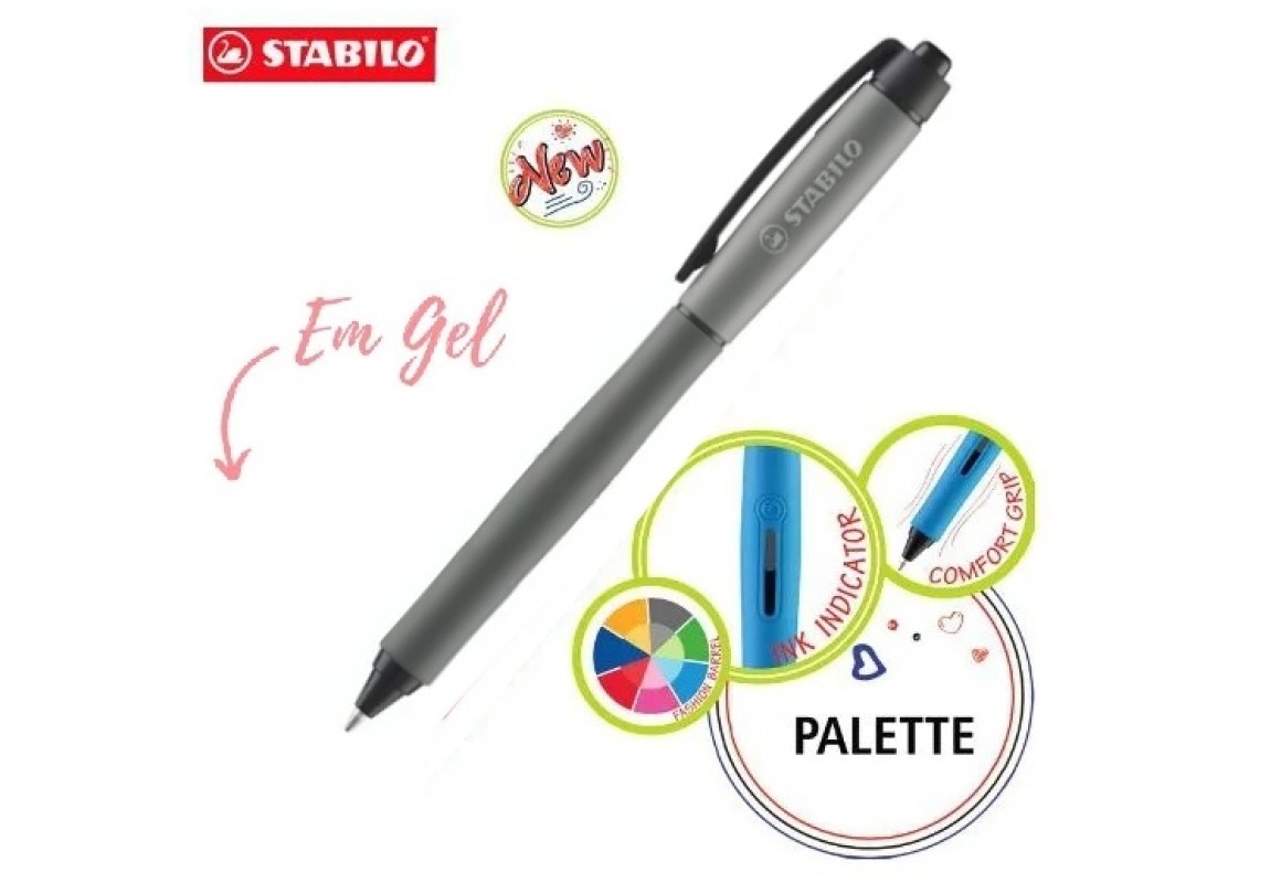 CANETA STABILO GEL PALETTE 7MM CORPO PRETA RETRATIL
