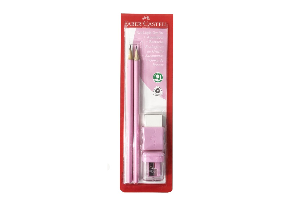 KIT FABER CARTELA COMBO PASTEL ROSA LAPIS + APON + BORR